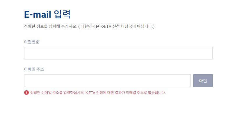 본인의 여권 번호를 입력하고 K-ETA 신청 결과를 받을 이메일 주소를 적어주세요.