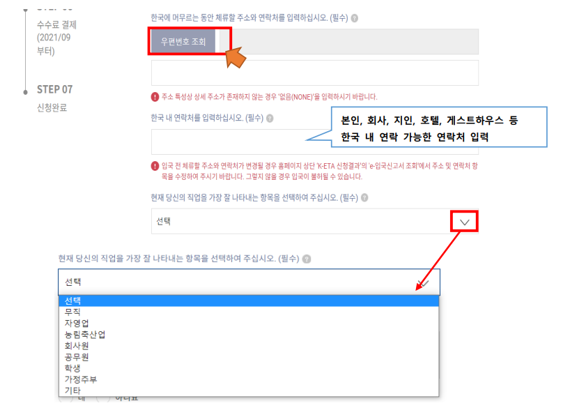 ※ 관광, 친지 등 방문, 회의참가, 상용(비영리 황동) 등의 목적으로 입국할 경우 비자 발급 없이 K-ETA로 입국이 가능합니다. 취업, 유학, 이민들은 비자를 발급받아야만 입국이 가능하니 주의해 주세요.