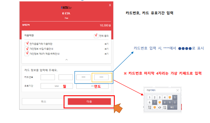보유 하신 카드 정보를 입력 후 결제를 눌러 주세요.