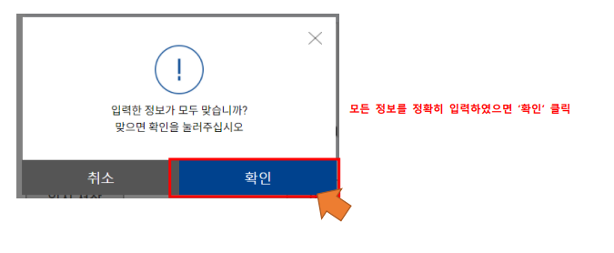 모두다 입력하셨다면 확인을 눌러 주세요.